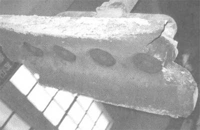 5、最嚴重的是造成陽極炭塊從鐵環底部斷層。